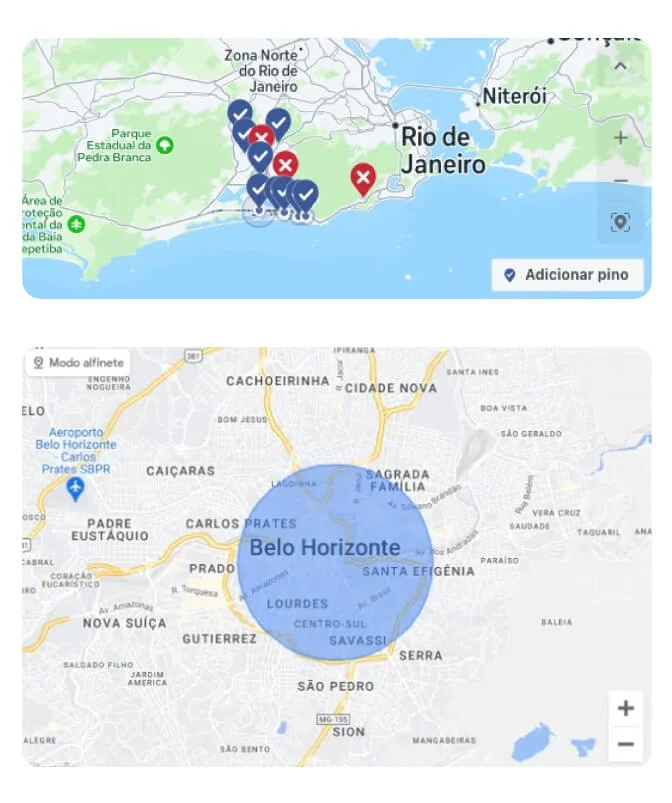 Anúncie em sua ciddade, na área de cobertura do seu negócio ou até mesmo ao redor de regiões desejadas e conquiste mais clientes.